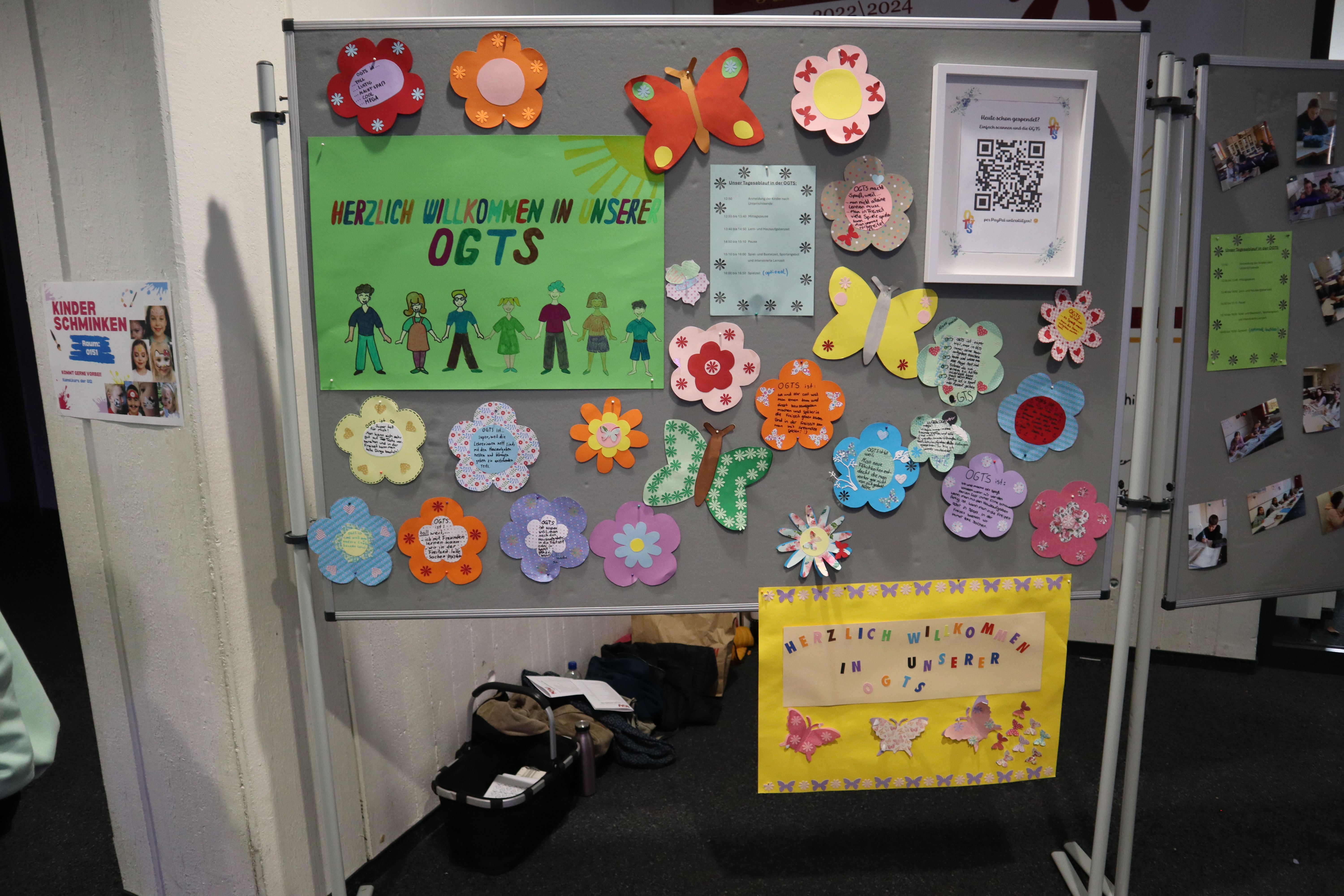 An zahlreichen Stationen konnten die Gäste sehen, was unsere Schülerinnen und Schüler am Vormittag konzipiert, gestaltet, gebastelt, geschrieben, gemalt, komponiert, programmiert und geprobt hatten: Ausstellungen, Mitmach-Projekte, mehrere Escape-Rooms und Aufführungen gaben einen bunten, vielseitigen Einblick in die Fächer des Pflicht- und Wahlunterrichts sowie in unser Schulleben. Das Angebot war so reichhaltig, dass die Besucherinnen und Besucher eine Auswahl treffen mussten und möglicherweise auf den einen oder anderen Raum nur einen flüchtigen Blick werfen konnten – zumal es ja auch galt, ein Päuschen beim Elternbeirat einzulegen, der mit einem beeindruckenden Kuchenangebot aufwartete.