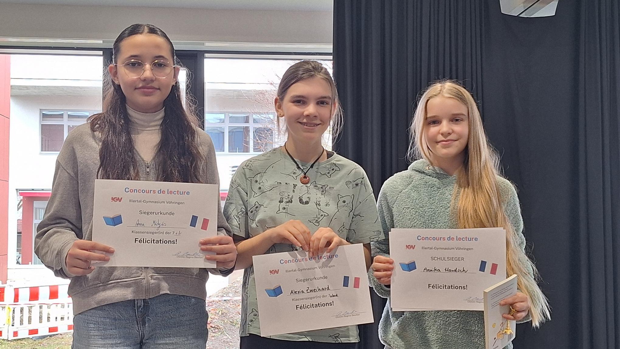 Die Jury bestand übrigens aus den drei Französischlehrerinnen der drei Gruppen, Frau Lange, Frau Steffel und Frau Strößner, dem Vorjahressieger, Rayyan Shahbal, und unserer französische Gastschülerin, Anaïs Junot.